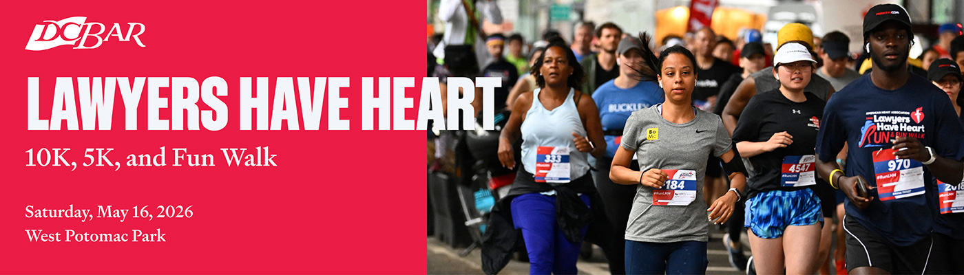 The D.C. Bar is partnering with the American Heart Association for the 2026 Lawyers Have Heart 10K, 5K, & Fun Walk. Since 2018, the D.C. Bar has organized its own team for the race and acted as the official location for Lawyers Have Heart race packet pickups.